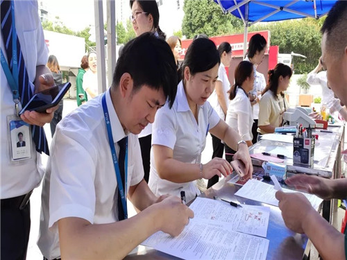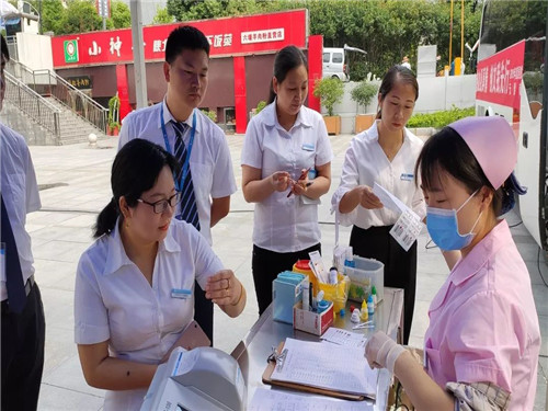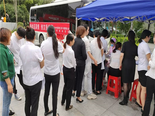 前來(lái)獻(xiàn)血的居然家人們?cè)谥驹刚叩囊龑?dǎo)下,有序領(lǐng)表登記,測(cè)定血型,量血壓,等待獻(xiàn)血。