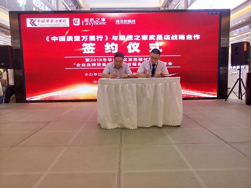 接下來市場調(diào)查部負(fù)責(zé)人發(fā)布了消費(fèi)警示報(bào)告,隨后居然之家武昌店總經(jīng)理蔡得法先生和《中國質(zhì)量萬里行》湖北中心張旭東主任分別代表合作雙方進(jìn)行了簽約儀式。